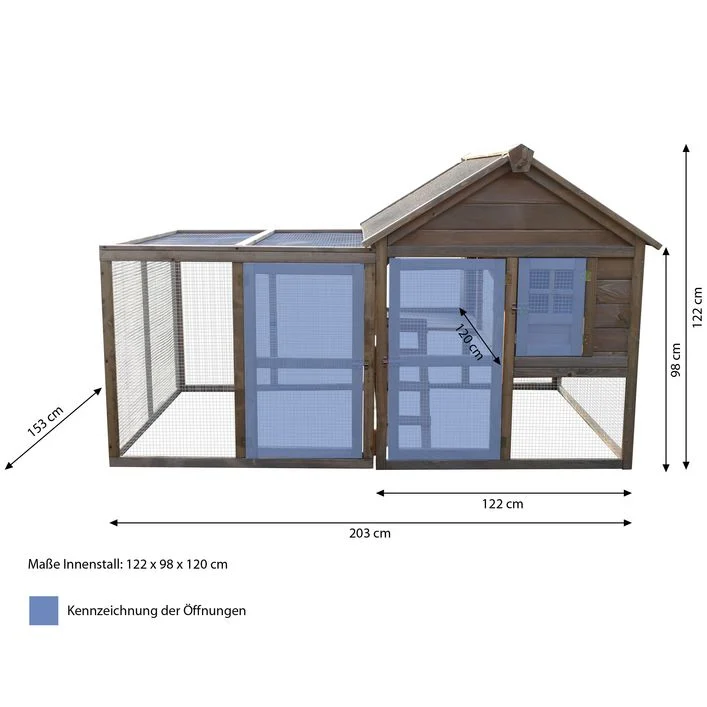 Praktischer Hühnerstall mit 3 Fenstern, 4 Außentüren und 1 Leiter