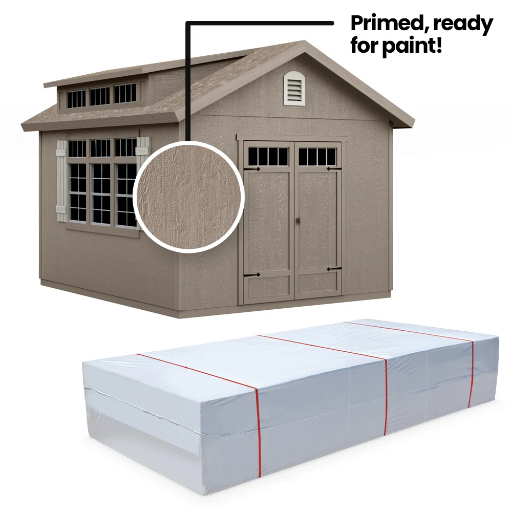 Our sheds use Louisiana Pacific® treated engineered wood siding to resist rot. fungal decay. and termites. They come factory-primed; all you have to do is add paint and shingles. The shed kit measures 4' x 8' and is delivered curbside.